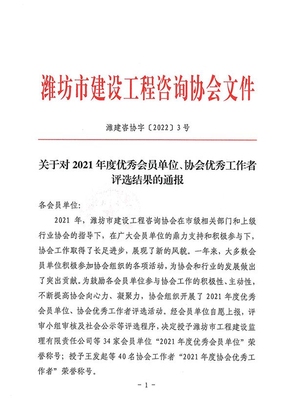 關(guān)于對2021年度優(yōu)會員單位、協(xié)會優(yōu)工作者評選結(jié)果的通報 2022-5-5 本文被閱讀 654 次